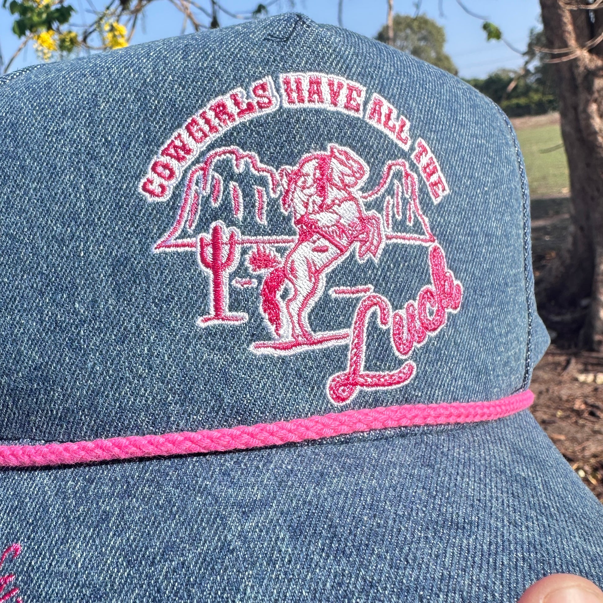 Cowgirls Have All The Luck – Denim Trucker Cap | Salty Sunflower AU
