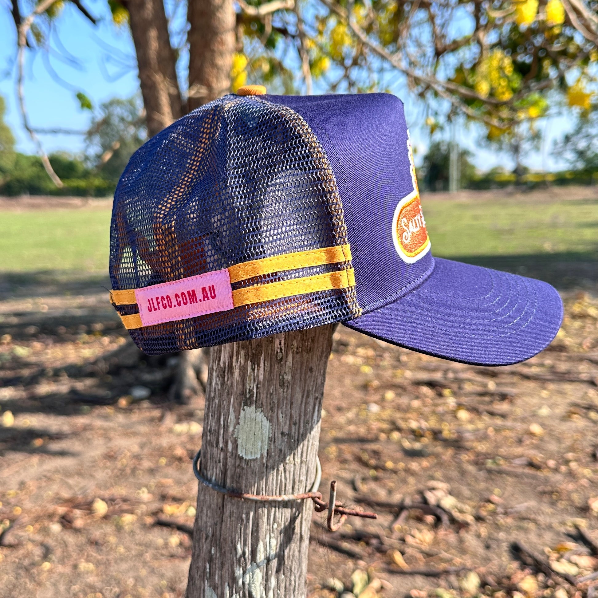Salty Sunflower AU Trucker Cap – Navy & Gold Retro Mesh Hat | Country Western Style